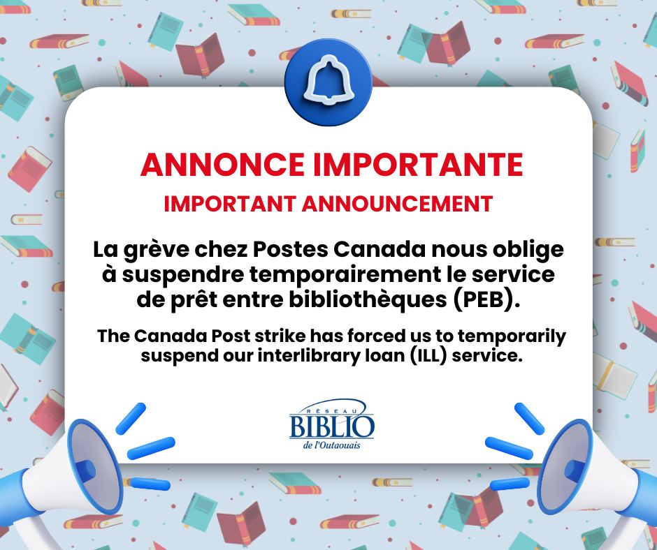 ANNONCE IMPORTANTE – BIBLIO OUTAOUAIS